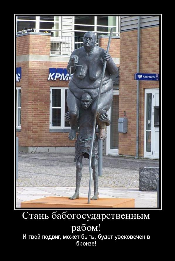 Это потребительство в чистом виде. Женщине вообще свойственно потреблять безвозмездно – и ничего не отдавать взамен. Особенно данная позиция усилилась в суровые 90-е, когда рухнул социализм с его нравственными псевдоценностями, и все резко поняли: смысл жизни в деньгах. Лимузины, виллы, меха, бриллианты, жратва и пойло – это не каприз выставочных телок, а обычно и нормально. И пошла атака на мужчин. Они кидают нам бабло, а нам все мало. Они лезут в криминал, а мы знай подначиваем. Они идут под нож, а мы сравниваем караты с соседкиными: этой суке больше отвалили!